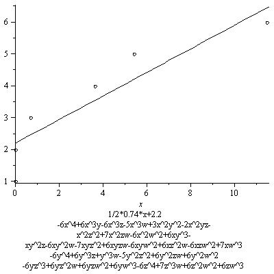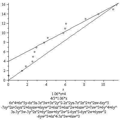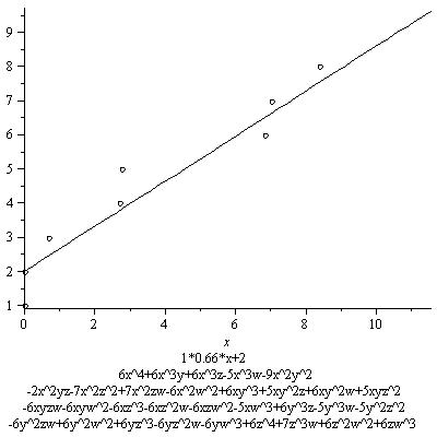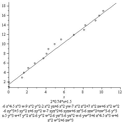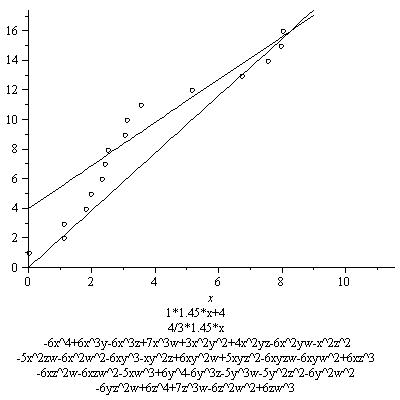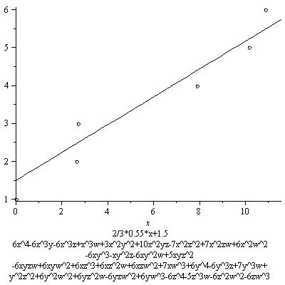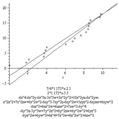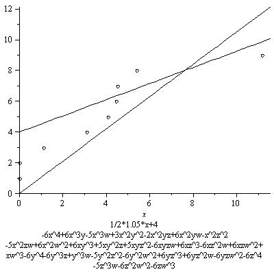 In the graph we also see a line whose slope is 3/4*7.8. Its equation is